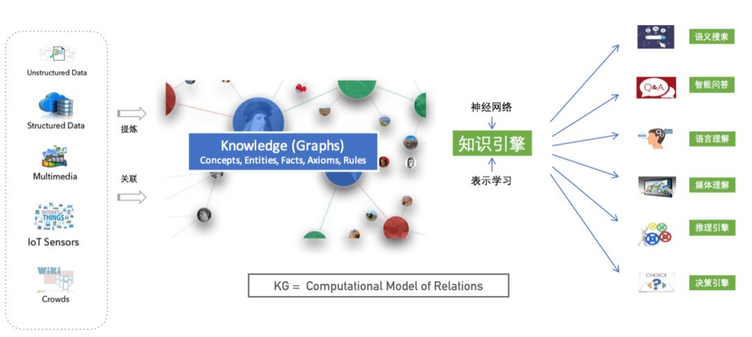 可以从多种来源来获取知识图谱数据,这包括:文本、结构化数据库、多媒体数据、传感器数据和人工众包等。每一种数据源的知识化都需要综合各种不同的技术手段。 例如,对于文本数据源就需要综合各种自然语言处理技术(实体识别、实体链接、关系抽取、事件抽取等)来实现从文本中抽取知识。