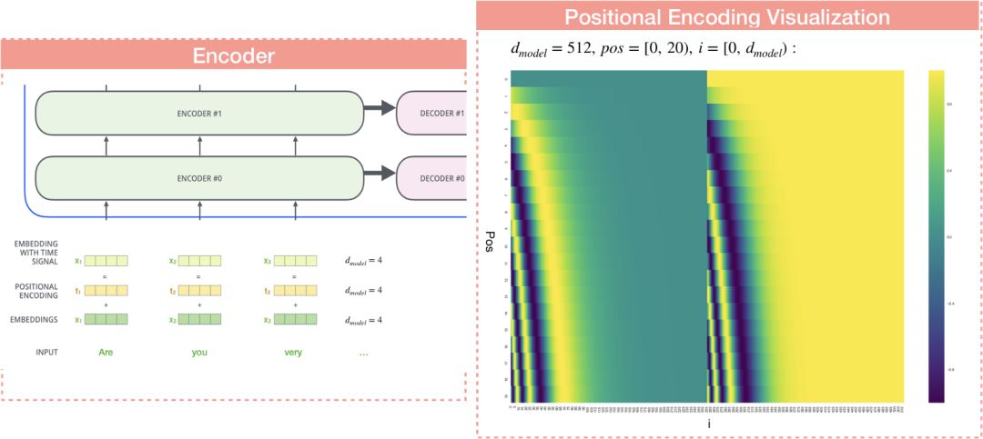 和RNN不同的是,multi-head attention不能学到输入句中每个文字的位置,举例来说,“Are you very big?” and “Are big very you?”,对multi-head而言,是一样的语句,因此,”The transformer”透过positional encoding,来学习每个文字的相对/绝对位置,最后再和输入句中文字的隐向量相加。
