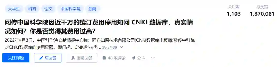 北大等近10家高校因知网太贵“涨价离谱”,被迫停用