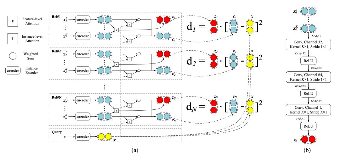 然后 feature-level 的实例能够衡量特征空间中的哪些维度对分类更为重要,从而为每种不同的关系都生成相适应的距离度量函数,从而使模型能够有效处理特征稀疏的问题。