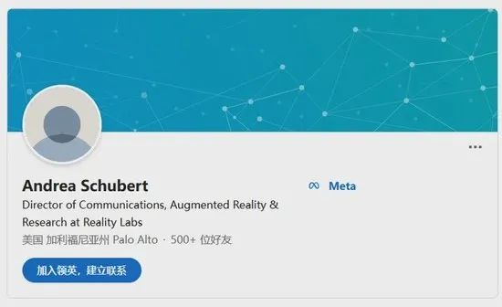 不过,目前Andrea Schubert的LinkedIn主页显示,她依然在Meta工作,担任Meta公司消费者硬件部门Reality Labs的通讯、增强现实和研究总监。鉴于市场的竞争和苹果的保密性,这种职位变化在产品上市前被隐藏起来也是有可能的。