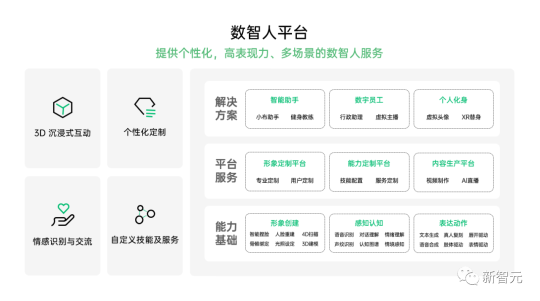 由此涵盖了从形象创建到感知认知,再到表达动作的基础能力,让开发者可以定制不同形象、不同能力的数智人,并通过视频制作、AI直播等形式落地。