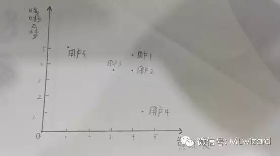 欧几里得距离就是以片子为轴,算出所有用户之间距离。如图1所示。距离越近相似度也就越高。图1是一个二维图。