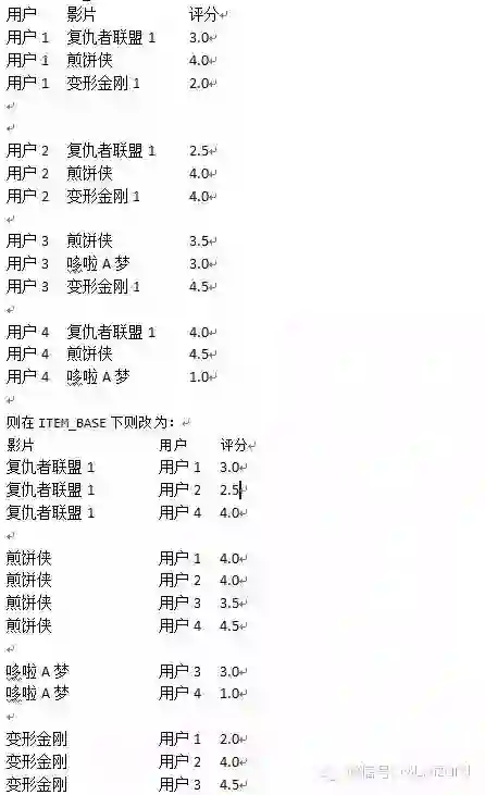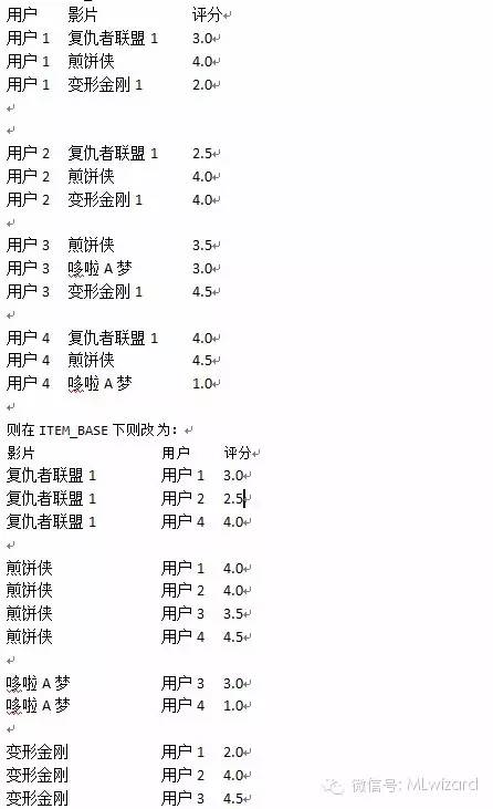 以上都是基于USER_BASE的推荐实现方式。ITEM_BASE在算法上和USER_BASE是一样的,基于以上的例子,无非是把用户的位子和影片的位子互换。