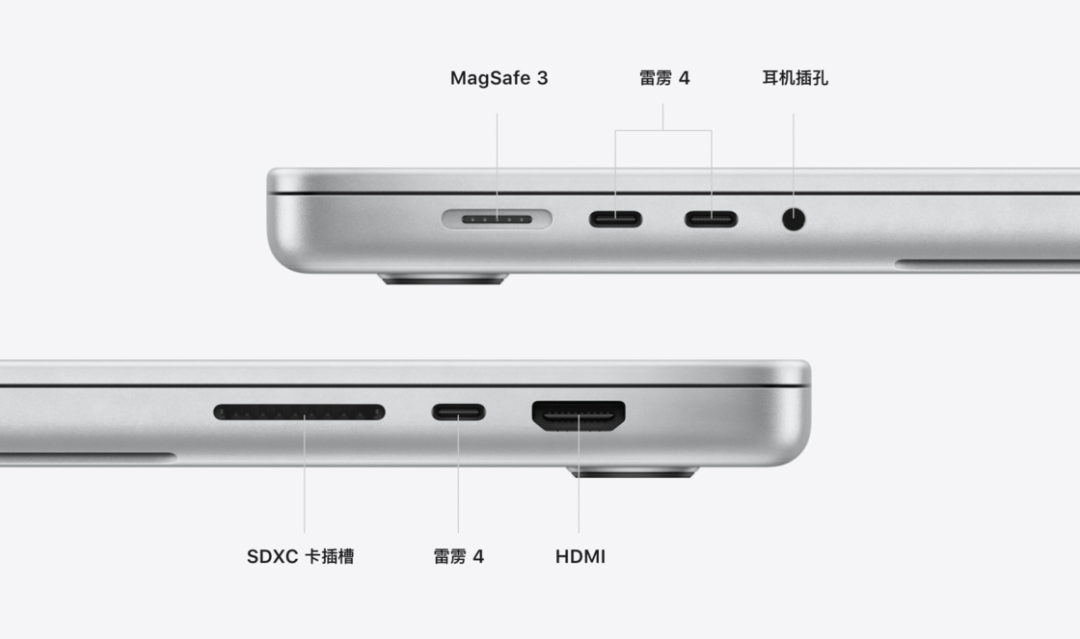 除了新芯片,新一代 Macbook Pro 各方面也是全面升级。2016 年以来首次的模具完全更新;一块内置 10000 颗 mini-LED 灯珠的 ProMotion 自适应刷新率屏幕;3 个雷雳 4 接口、1 个 HDMI 接口、1 个 SDXC 卡插槽、1 个 3.5mm 耳机接口,充电接口则回归了 MagSafe 连接方式。最高 64 GB 的带宽,让 M1 Max 芯片机型支持连接 3 台 Pro Display XDR 显示器加一台 4K 电视。如此配置,专业人士怎能不爱。