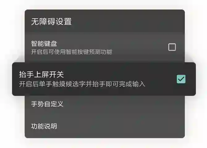在无障碍模式下,输入法提供了独有的双指滑动选词手势。