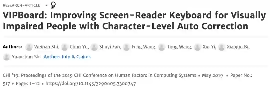 而团队的相关工作也发表在了人机交互领域顶级学术会议——国际计算机学会人机交互大会(The ACM CHI Conference on Human Factors in Computing Systems 2019)上,并获得