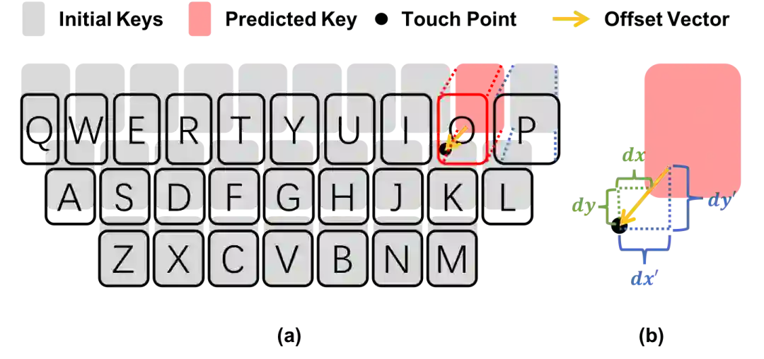 论文提出的方法基于用户输入行为模型和语言模型来动态预测目标字符,在手指碰触瞬间自动调整键盘布局,实现字符级自动纠错。