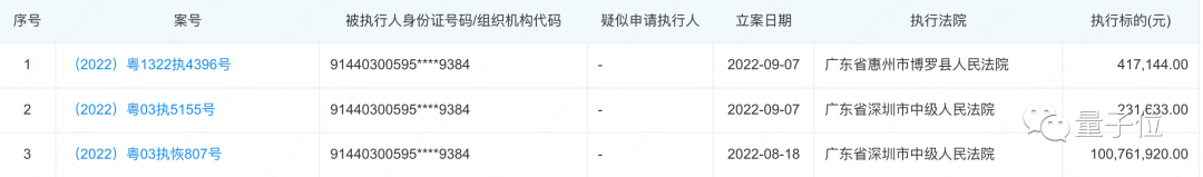成为被执行人3次,总执行标的超过1亿元。