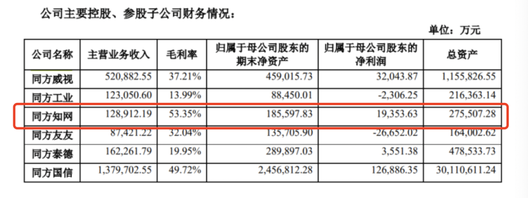 而在同方股份2021年的财报数据中,知网在该财年的主营业务收入达到了12.89亿元。