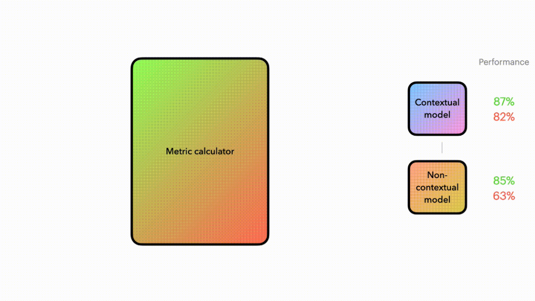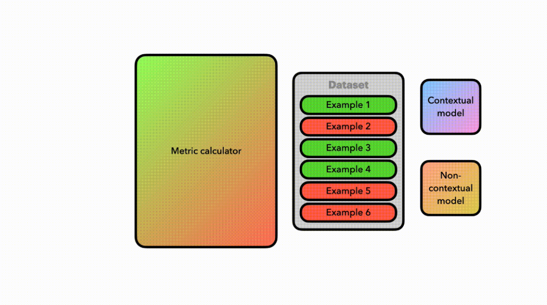 对度量标准计算及其如何用于评估两种嵌入模型的性能进行动画处理。