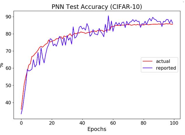 你好,我是这篇论文的第一作者。我们在大约3周前注意到了这个问题,现在正在调查中。我很感谢Michael对PNN论文的实现,并将他发现的问题告诉给了我们。我们希望彻底分析问题,并且得到100%确定的结果,之后再给出进一步的回复。