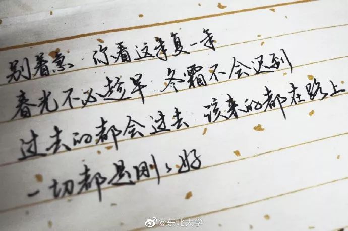 东北大学学生手写祝福语(学校供图 书写@雨光诗色)
