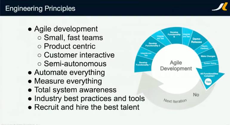 所以,团队选择自己的工具,他们选择自己的开发方法,他们选择各种各样的东西。而且我们实际上允许他们尽可能快地完成他们所需要做的工作。
