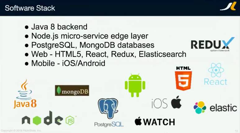 在网站上,我们都是HTML5,我们正在转向React和Redux,我们正在使用Elasticsearch快速搜索和索引我们的数据。而且,我们当然有iOS和Android移动应用。所以你可以在我们的网站上找到关于Flightstats的更多信息。