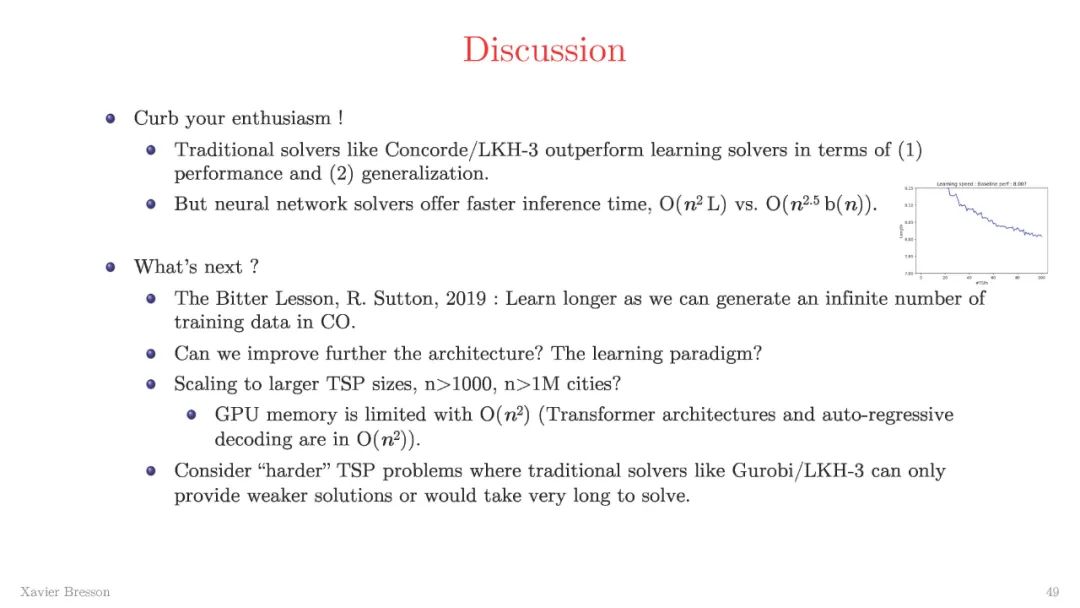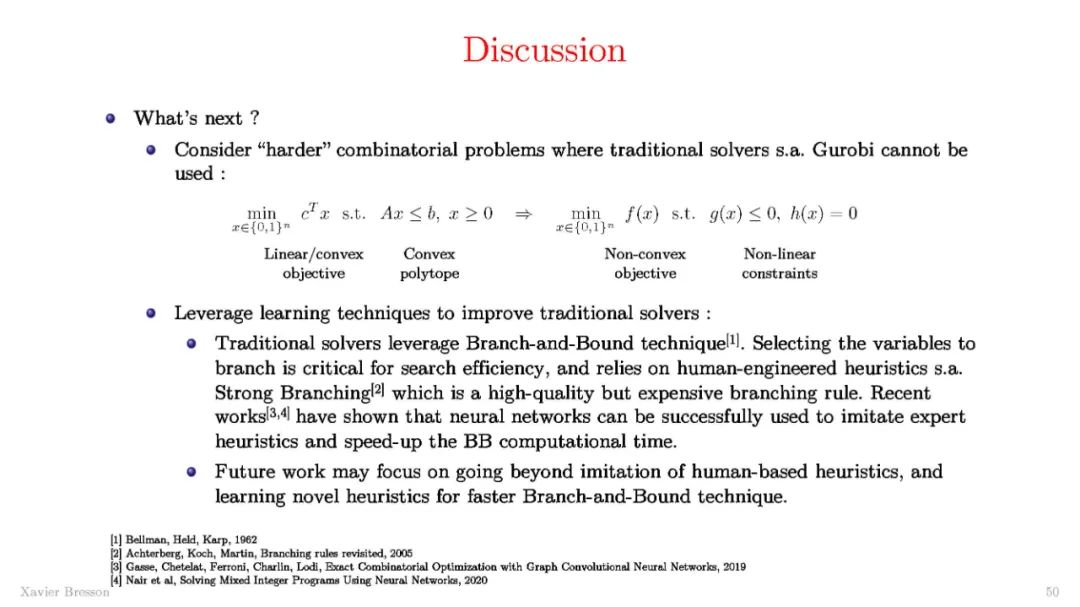 在过去的五年里,我们看到了一些有前途的技术的出现,在这些技术中(图)神经网络能够学习新的组合算法。主要的问题是,深度学习能否从数据中学习更好的启发式,即取代人类工程的启发式?这很有吸引力,因为开发有效解决NP难题的算法可能需要多年的研究,而许多行业问题本质上是组合在一起的。