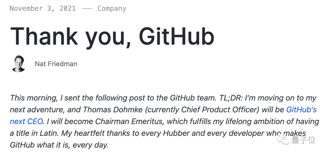 一句“Thank you, GitHub”,纳特·弗里德曼(Nat Friedman)——原GitHub CEO,正式宣布卸任。