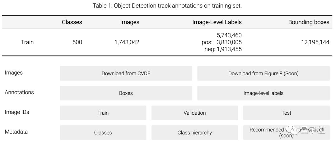 训练集包含500类170万张图片,带有1220万处bounding-box标注;