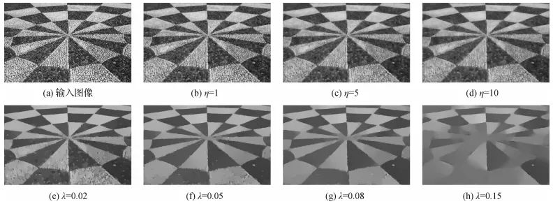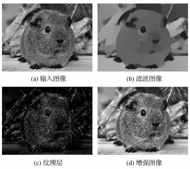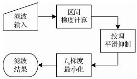 最后,考虑到纹理梯度抑制时会对结构像素的梯度产生一定的衰减作用,本文采用具有梯度提升作用的梯度最小化方法对纹理抑制图像进行滤波,得到纹理抑制结构保持的纹理滤波图像。