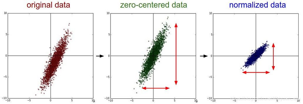 对于我们的输入矩阵X(形状为[N x D]),通常有三种常见的数据预处理形式: