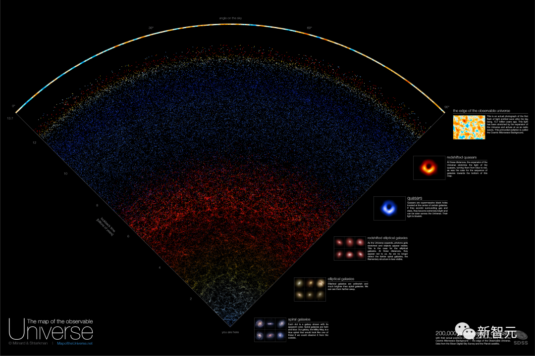 完整的宇宙地图实际上是一个球体。此次可视化的,只是宇宙的「一片」。