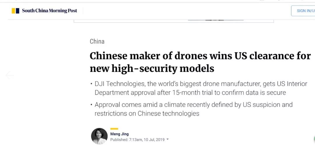 香港《南华早报》:中国无人机制造商赢得美国对新型高安全性机型的许可