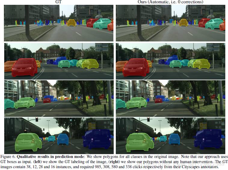 模型预测阶段,在RNN每一步得到最高概率分数的顶点。此外标注着可以在每一步纠正预测。我们可以输入人为纠正的顶点到RNN下一步,然后让模型返回到正确的划分道路上。正常情况下,一个目标圈出轮廓仅需要250ms。
