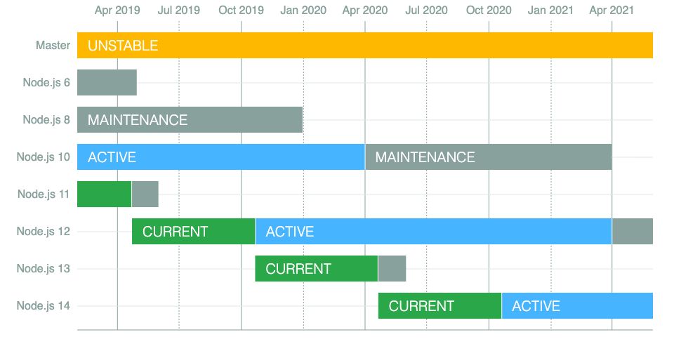 如果你不了解 Node.js 的 Long Term Support 发布策略的话,一定要看看 https://github.com/nodejs/Release 。