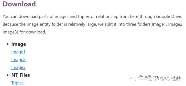 b) Download:提供了image文件和三元组关系N-Triples文件的下载链接。