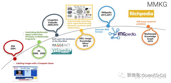 目前,已经有很多开放知识图谱(见https://lod-cloud.net/和openkg),而且不少企业也有自己的企业知识图谱。然而,这些知识图谱很少有可视化的数据资源。图1所示为多模态知识图谱的发展过程。