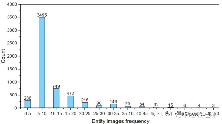 与一般的文本知识图谱不同,Richpedia的出发点是构造一个多模态知识图谱,其中包含了全面的图像实体及其之间的关系。但是,如图4所示,文本知识图谱实体的图像资源有很大一部分是长尾分布。换句话说,平均每一个文本知识图谱实体在Wikipedia中只有很少的视觉信息。因此,我们考虑借助外部来源来填充Richpedia,首先我们基于现有的传统文本实体,从维基百科,谷歌,必应和雅虎四大图像搜索引擎中获取相应的图像实体,每一个图像作为知识图谱中的一个实体存储于Richpedia中。Wikidata已经为每个文本知识图谱实体定义了唯一的统一资源标识符,我们将这些统一资源标识符添加到Richpedia作为文本知识图谱实体。在目前的版本中,我们主要收集了30,638个关于城市、景点和名人的实体。对于图像实体,我们可以直观地从Wikipedia上收集图像,然后在Richpedia中创建相应的统一资源标识符。