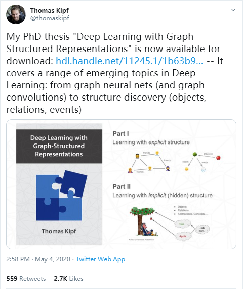 GCN 作者 Thomas Kipf 宣布公开其博士论文(178 页)。