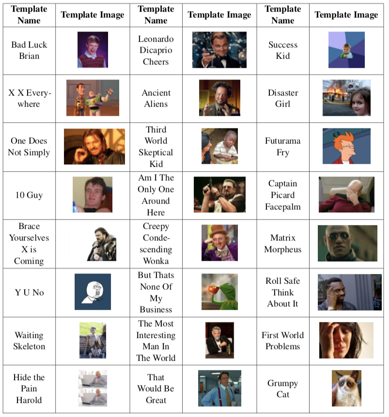附录 A:实验中所用 meme 字幕数据集包括的模版和图像。