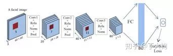 如下图网络结构所示,整体网络有三个卷积层,维度为80的FC后面接k-1个二分类FC。