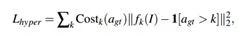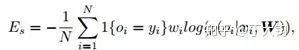 对于每个子任务,使用的交叉熵如下(W是网络参数,xi是输入,oi是输出,wi是图像权重):