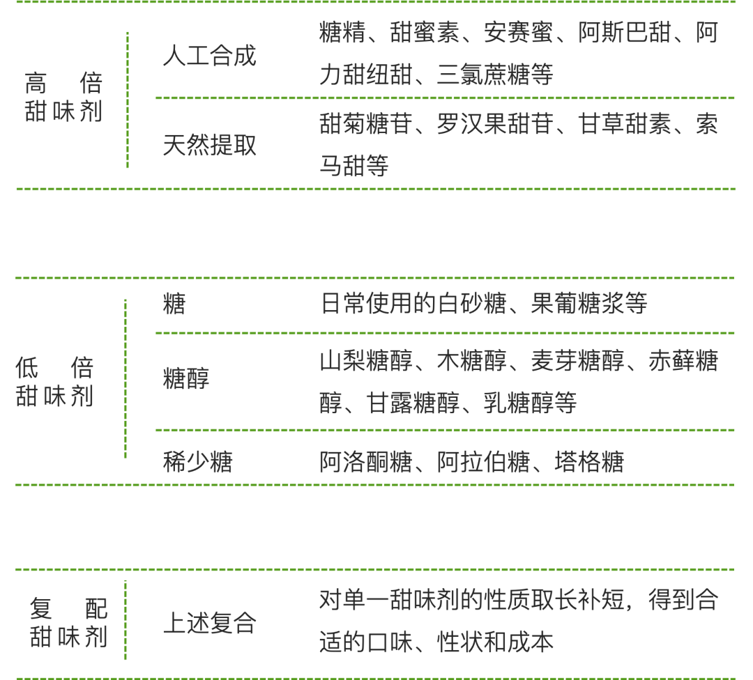 其中除了糖之外的,便是所谓“代糖”。“代糖”的本质是“代甜”。我们希望使用其它甜味剂来实现甜味,同时又能减少过量的糖摄入带来的健康问题。