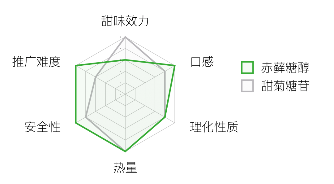 人工合成的代糖虽然减糖性能已满足要求,但健康安全性有部分隐患、且部分口感还原度低,所以天然提取的代糖开始发展。人们往往认为天然的食品添加剂比人工化学合成的安全。对于人工代糖的添加,消费者往往存在排斥心理。并且客观来说,相比于还原蔗糖的完整口感,人工代糖的确还是有很多问题。
