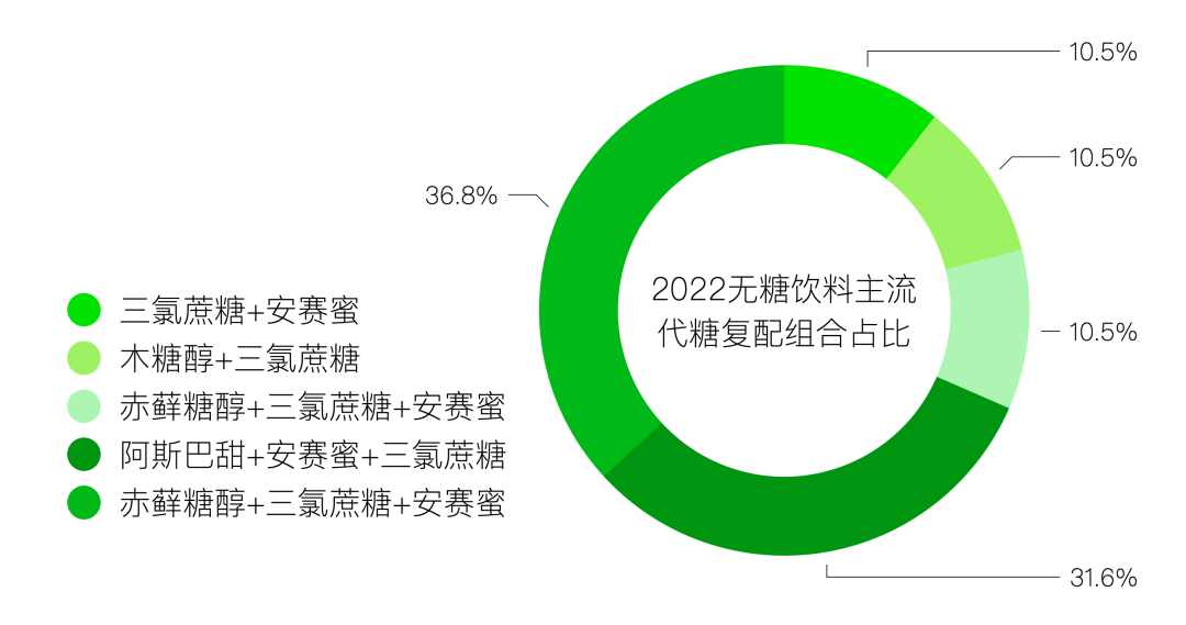 在实际的食品添加场景中,代糖一般不会单一使用,而是多种复配,以达到对蔗糖更还原的口感、多种情景下更好的稳定性以及对总体成本的合理控制。比如赤藓糖醇的甜度为蔗糖的70%,单一使用赤藓糖醇可能成本高、口味淡,因此一般加入极少量高倍甜味剂。比如糖精有后苦味、甜蜜素口味微苦且耐酸性稍差、甜菊糖苷有一定草腥味、安赛蜜糖甜味去得快后甜不足、阿斯巴甜前甜不足且在酸性饮料中的稳定性较差。
