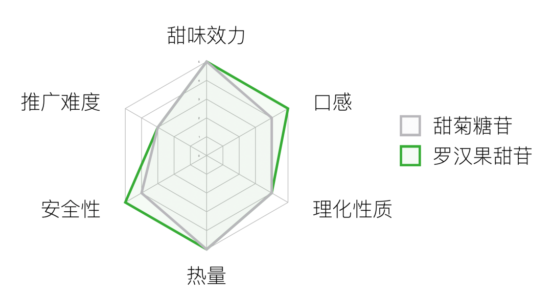 甜菊糖苷的优点包括安全性高、溶解性好、耐酸耐热稳定性高等,但问题是天然甜菊糖苷的口感区别于蔗糖,有很多不良的细节,阻碍了其在食品饮料领域的应用。因此在研究不断发现改进其口感的酶法或发酵法之后,才逐渐得以应用。