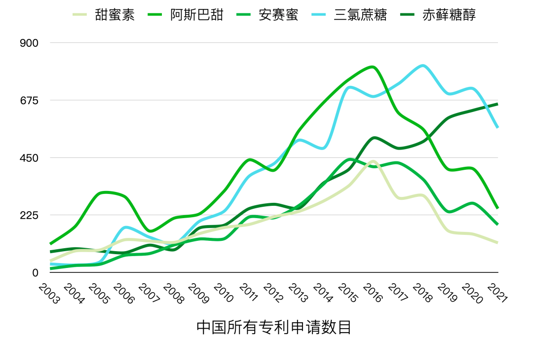 赤藓糖醇目前在国内是绝对的新锐头部,在美国也有很好的增长。作为赤藓糖醇的搭配,国内目前对三氯蔗糖的研究越来越多。