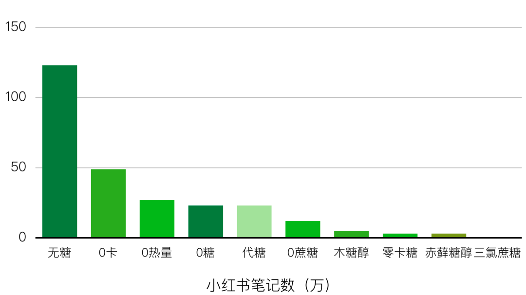 无糖其实才是消费者最关注的点,其次是“0卡”、“0热量”、“0糖”。消费者对于糖,最在乎的还是热量,而非其他健康问题。
