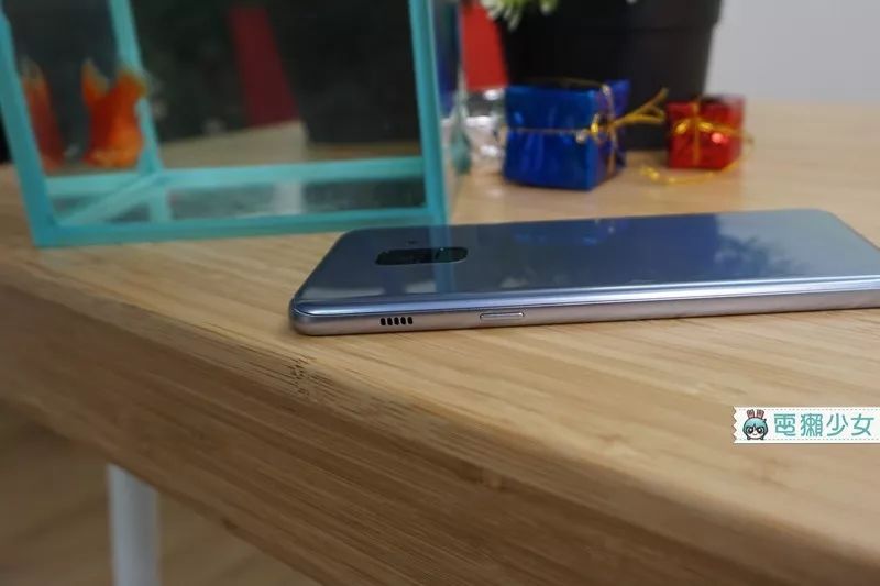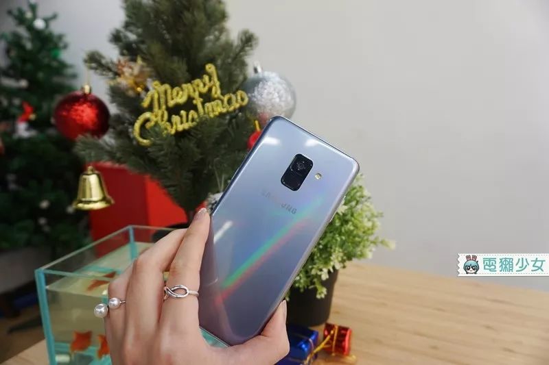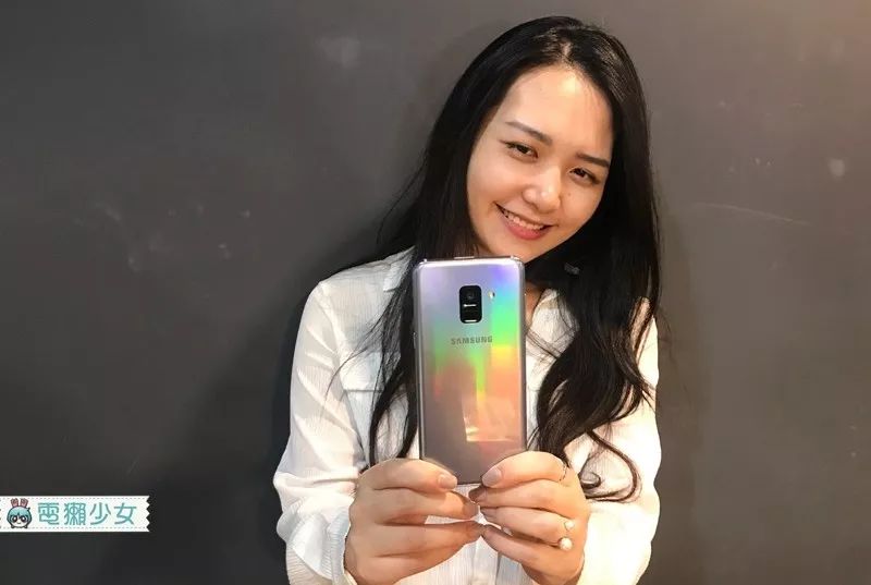 刚刚我手拿著 Galaxy A8 大家可能没发现,但它背后有一点蛮特别的,会让你不想用花俏的手机壳盖住它,在光线折射下,Galaxy A8 的背面会出现一种特别的彩虹光,它会在不经意的时候闪过那道光,如果大家有机会玩到 Galaxy A8,千万别以为那是你眼花阿哈哈哈