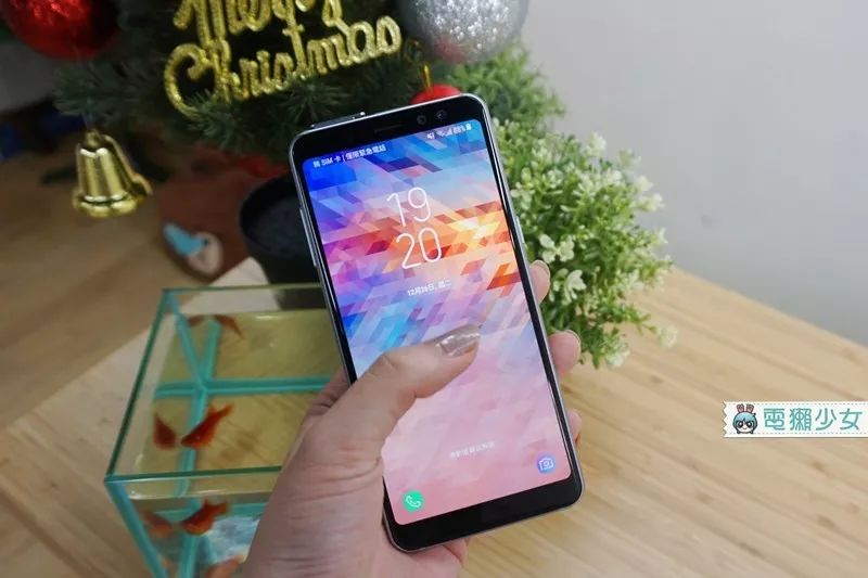 Galaxy A8 具有两颗前镜头可以自拍,是 1600 万像素+ 800 万像素搭配 F1.9 光圈的搭配喔~话说阿~诗伊拿到的 Galaxy A8,它是 5.6 吋 18.5:9 的 Super AMOLED 屏幕,在 Samsung 家的 Always on display 静置状态上看起来是否长得有那麽点像他们家旗舰机 Note8 或 S8 勒?
