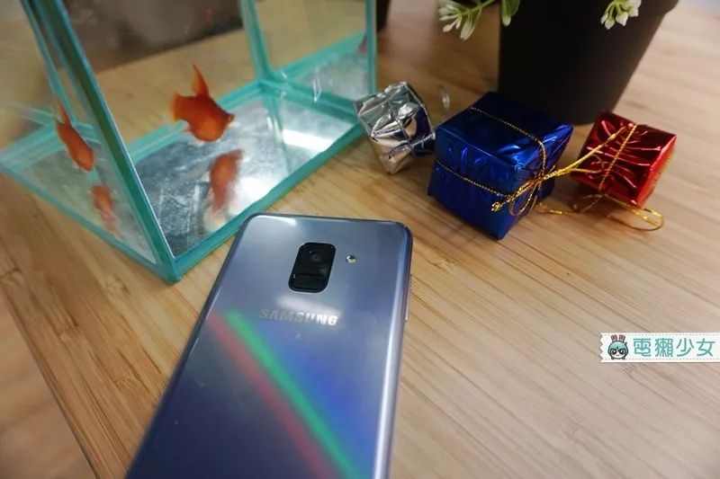 就 Galaxy A8 的外观我会给到 80 分!!背后的彩虹光让我在帮它拍照的时候一直有惊喜感,另外双前镜头的表现我有满意,借给朋友试拍他们也吓了一跳,说「欸这个色调很棒!!」(然后强迫我把照片给他们冏),最近 Samsung 家很强调他们的夜拍功能,我也觉得在这部分阿,A8 有展现出他们的优势喔~