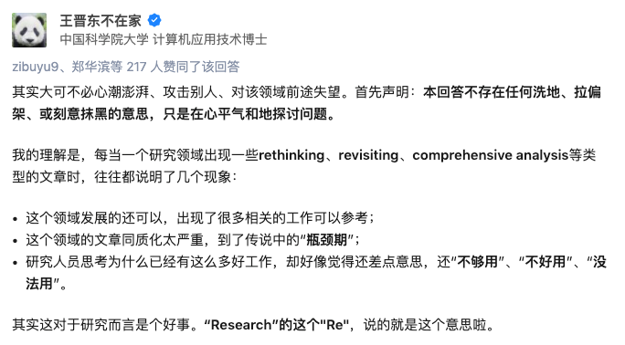 中科院计算所博士生、知乎用户 @ 王晋东认为:「其实大可不必心潮澎湃、攻击别人、对该领域前途失望。」