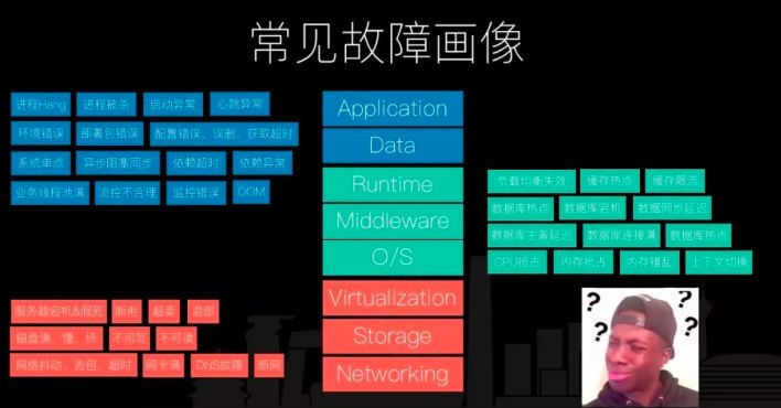 任何故障,一定是硬件如IaaS层,软件如PaaS或SaaS的故障, 并且有个规律,硬件故障的现象,一定可以在软件故障现象上有所体现;