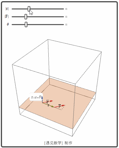 当我们再扳手上用一个力 F 转动一个螺栓时, 就产生一个转矩作用在螺栓的轴上以使螺栓前进. 转矩的大小依赖力作用在扳手多远的地方和多大的在作用点垂直于扳手的力. 转矩的大小 τ 是杠杆 r 的臂长和 F 的垂直于 r 的数量分量的乘积
