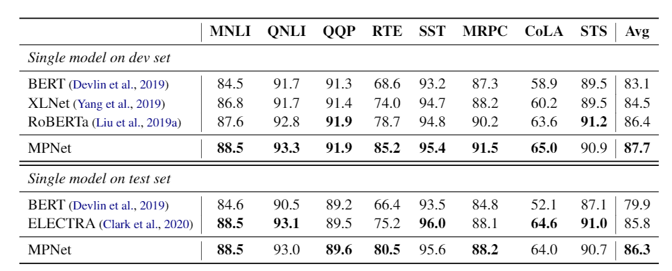 编者按:近年来,预训练语言模型无疑成为了自然语言处理的研究热点。这些模型通过设计有效的预训练目标,在大规模语料上学习更好的语言表征来帮助自然语言的理解和生成。其中,BERT 采用的掩码语言模型 MLM 和 XLNet 采用的排列语言模型 PLM 是两种比较成功的预训练目标。然而,这两种训练目标各有优缺,具有较大的提升空间。为此,微软亚洲研究院机器学习组的研究员们,继去年面向自然语言生成任务推出预训练模型 MASS 之后,在自然语言理解任务上推出全新预训练模型 MPNet。它在 PLM 和 MLM 的基础上扬长避短,在自然语言理解任务 GLUE 和 SQuAD 中,超越 BERT、XLNet 和 RoBERTa 等预训练模型,取得了更好的性能。论文、代码和模型均已开放下载(见文末)。