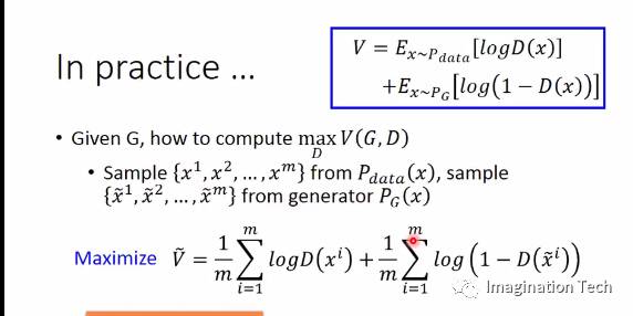 首先,既然直接计算期望而不可得,我们只能退而求其次,从Pd中sample 出m个样本,再从Pg中sample出m个样本,最大化D(x)在这2m个样本的V值,如下图所示: