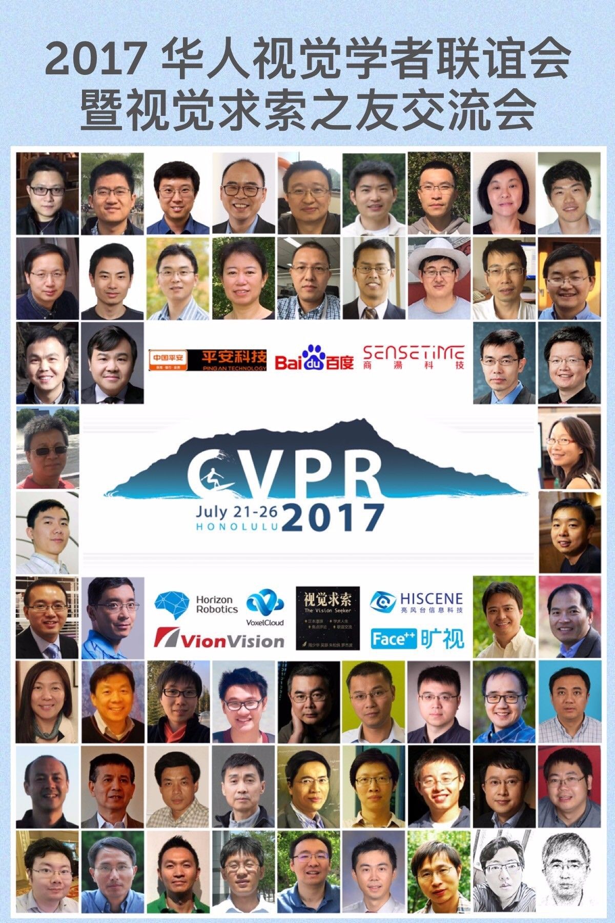 我从2000年第一次参加CVPR, 到今年2017年已经是第16次。毕业之后我在工业界先是呆了十五六年,然后又到学术界呆了六年。最近, 又担任业界的顾问。